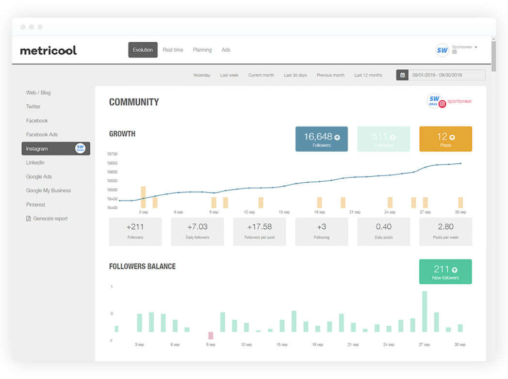 Si gestionas las redes sociales de tu negocio, seguro que eres consciente de la complejidad que tiene hacerlo a una determinada hora de un determinado día, en el que probablemente estés ocupado/a con otros temas o directamente solo quieres invertir algunas horas de un día para dejar algunas publicaciones listas. En Facebook, por ejemplo, la propia plataforma te permite programar una publicación, y gracias a Creator Studio, la nueva herramienta de esta red social para la gestión de sus propias publicaciones, nos permite también programar publicaciones en Instagram, ¡un gran avance cuando gestionas decenas de cuentas! Por todo esto, queremos hablarte de Metricool, una herramienta online que te permite revisar tus métricas, planificar tus contenidos y gestionar la publicidad online de forma fácil. La herramienta es muy intuitiva y tienes todo a tu alcance, desde visualizar la analítica de tu web hasta tener una visión general de las redes sociales (nuevos seguidores, nuevos me gustas, balance de tus seguidores…)